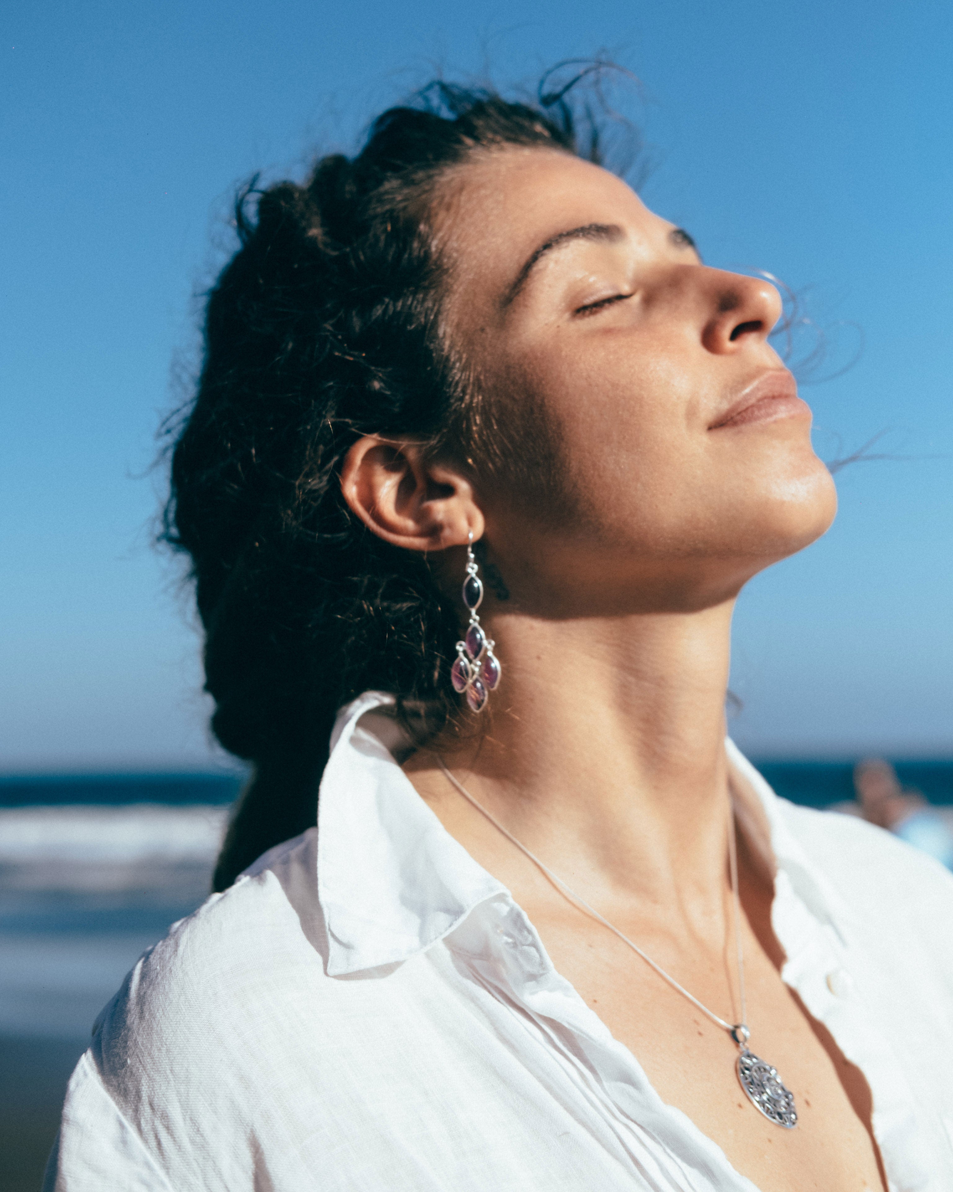 Timeless elegance with a touch of sophistication. Crafted silver, each earring features multiple natural amethyst gem...